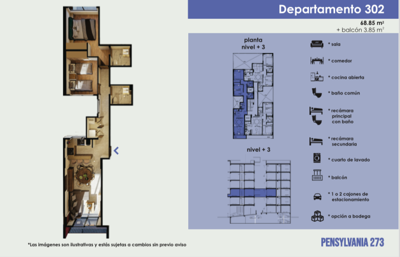 Los departamentos  del desarrollo en la calle de Pensylvania ofrecen distribuciones amplias, modernas y diseñadas para brindar confort en cada rincón. Con una excelente iluminación natural y materiales de alta calidad, estos hogares se adaptan perfectamente a distintos estilos de vida.